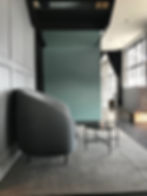 This photo, taken at the Norman Copenhagen flagship showroom, reflects a trend that we saw throughout the city: spreading one hue across various objects in a space. This technique is really powerful when used correctly, and provides a three dimensional experience of one color (as seen in all of the Norman Copenhagen interior images shown above). In the photo on the left, the upholstery on the furniture is the same hue as the color on the wall. Each row of chairs uses a different material and is a different value of the same color-- the darkest being the bottom row of chairs, and the lightest being the top row. Although simple, the diversity in materials and color value keeps things interesting.